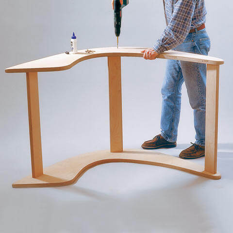 Dieser ungewöhnliche Stuhl kann von Hand mit Hilfe von Zeichnungen und Diagrammen hergestellt werden, die in einer Computeranwendung erstellt und dann gedruckt werden sollen. Dies ist notwendig, um die genauen Abmessungen und Konturen aller komplexen geometrischen Teile zu erhalten. Verfahren: