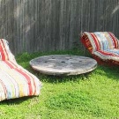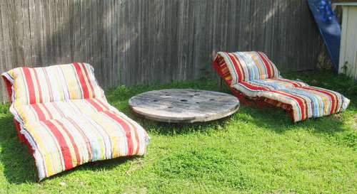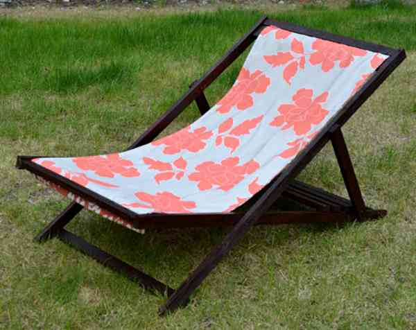 Der obere Teil des Liegestuhls ist besser, um den Stoff zu machen. Es wird schön aussehen und die gesamte Struktur nicht belasten.