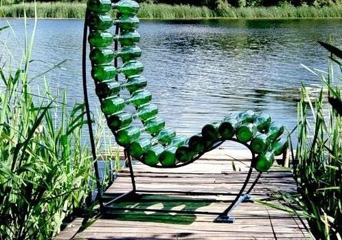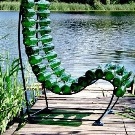 Ein solches Attribut zur Erholung hat eine Reihe von Vorteilen: kompakt, bequem, leicht zu falten, leicht, haltbar und zuverlässig, in einer faltbaren Form braucht es wenig Platz. Im Aussehen ähnelt es einem Stuhl mit einem hohen Rücken. Eine ungewöhnliche Art zu bauen, sieht originell aus. Dies erfordert Stangen, verzinkten Draht (Durchmesser 4 mm) und die gleichen Klammern für die Befestigung des Drahtes (16 Stück), Drahtschneider, einen Hammer. Der Prozess läuft so: