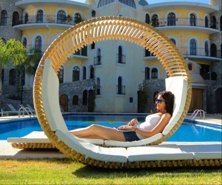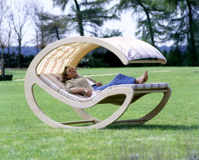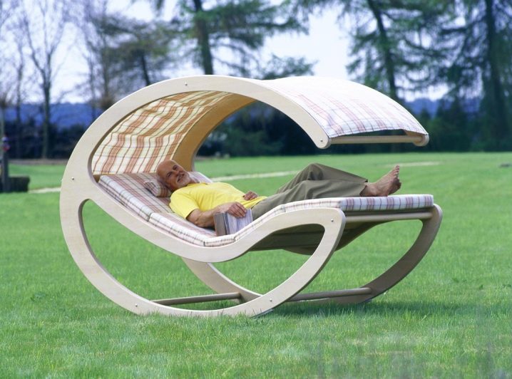 Menschen mit kreativem Denken möchten nicht immer einfache Chaiselongues auf ihrem Territorium sehen, daher gibt es einige originelle Ideen, um Modelle für die Erholung zu schaffen.