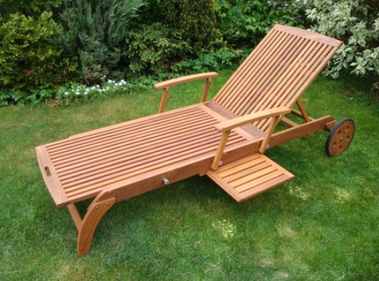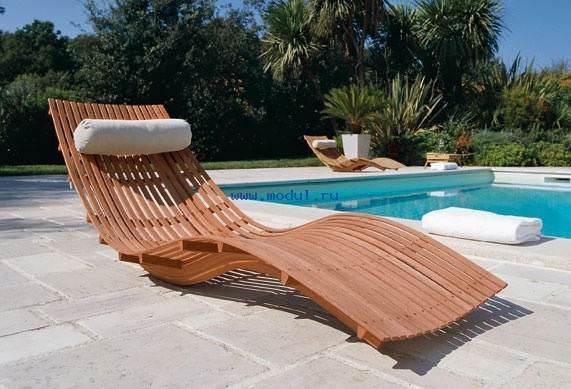 - Holz. Dieses Design ist langlebig, komfortabel, umweltfreundlich, in Form und Aussehen unterschiedlich. Der einzige Nachteil ist eine Menge Gewicht. Um den Transport der Chaiselongue zu erleichtern, sind Räder an den Beinen angebracht.