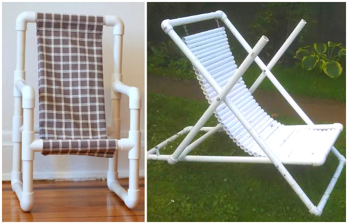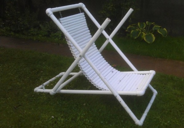 - PVC Die gleiche Liege mit einem Stoffboden, aber im Herzen des Rahmens - PVC-Rohre.