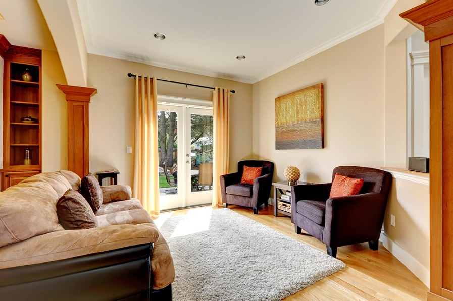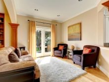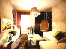 Für das Wohnzimmer sind weiche Stühle erforderlich, es ist sinnvoll, große Familien und freundliche Firmen unterzubringen. Der Hauptzweck dieser Zone im Haus - Zeit mit der Gesellschaft von geliebten Menschen zu verbringen. Bei der Dekoration kleiner Räume haben Mini-Möbel eine Reihe von Vorteilen: