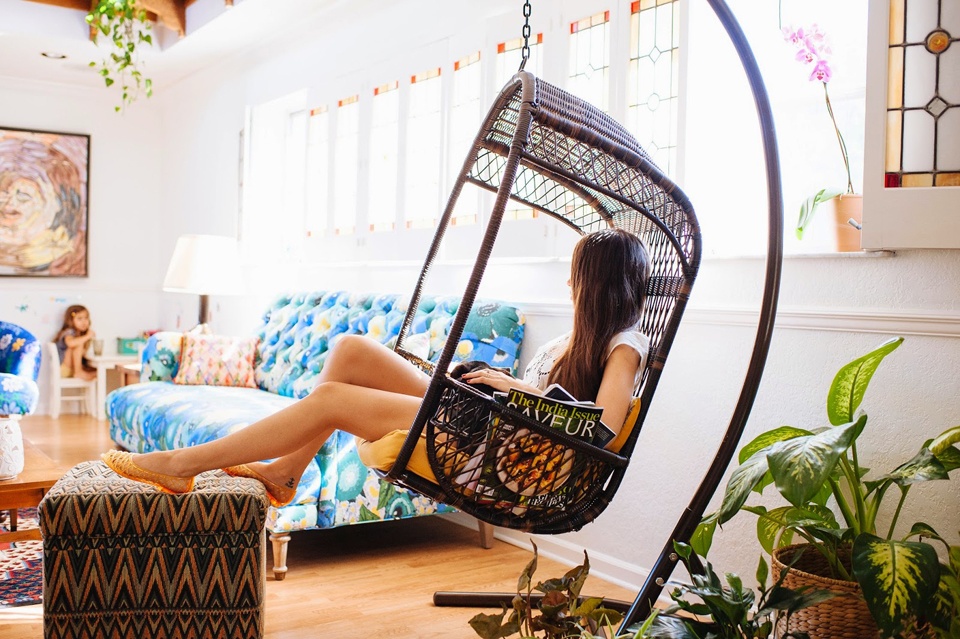 Dieses Möbelstück ist repräsentativ für die Richtung des Retro. Jetzt gewinnen solche Modelle wieder an Popularität. Es gibt Schaukelstühle von nicht-Standard-Größen, die eine stilvolle und farbenfrohe Ergänzung zu jedem Raum im Haus sein wird. In der warmen Jahreszeit können sie auf dem Balkon, der Veranda oder der Terrasse aufgestellt werden, und bei beginnendem kaltem Wetter können sie in die Wohnung gebracht werden. Ihre spezielle Funktion hängt nicht von der Größe ab. Psychologen empfehlen, das Schaukeln zu benutzen, um sich zu entspannen, Ängste und andere negative Emotionen loszuwerden. Der schwankende Effekt wirkt sich positiv auf den psychischen Gesundheitszustand aus.