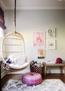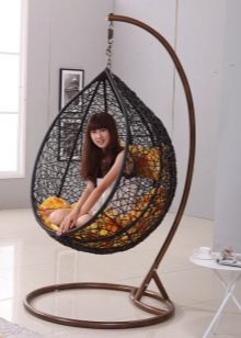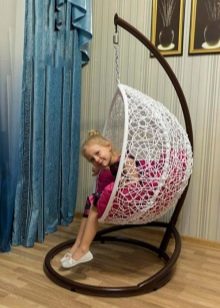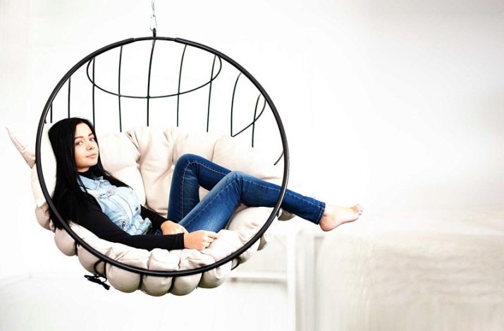 - Zuverlässigkeit Befestigung. Dieser Faktor sollte auch bei der Auswahl eines Produkts berücksichtigt werden. Sie können diesen Stuhl auf Ihrem eigenen Stützgestell installieren oder das Modell an der Decke befestigen. Gleichzeitig werden Möbel für ein anderes Gewicht hergestellt, achten Sie darauf, dies zu berücksichtigen.