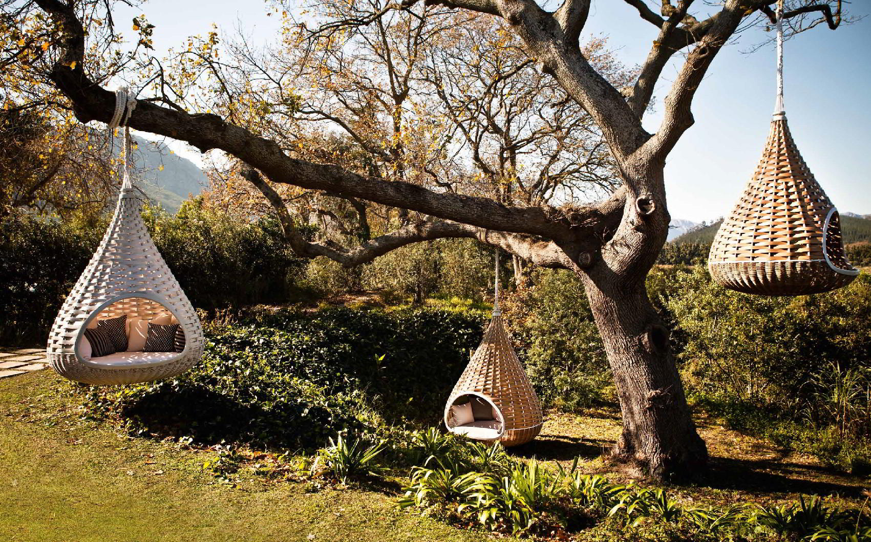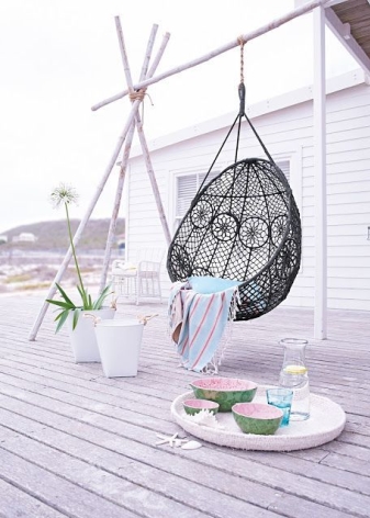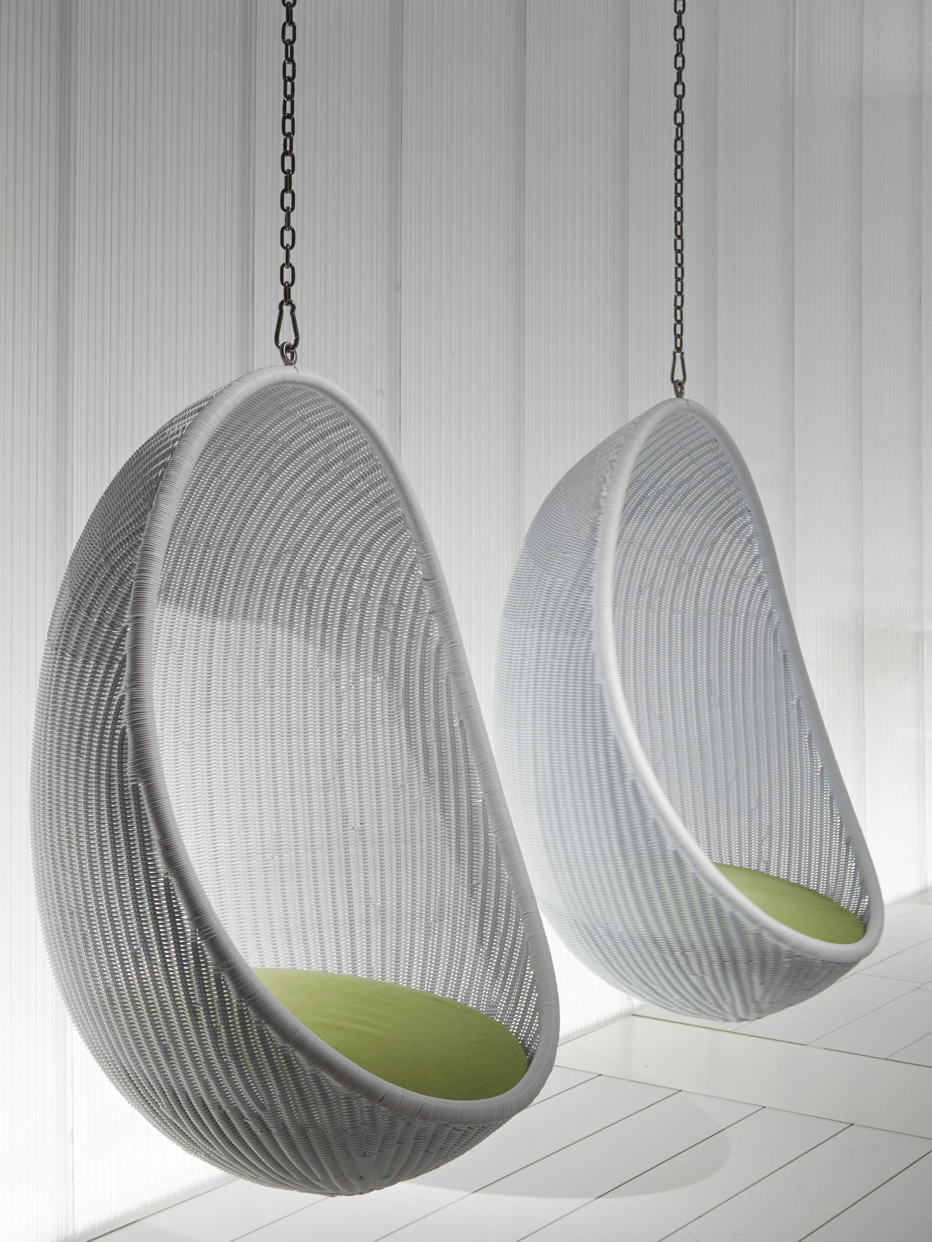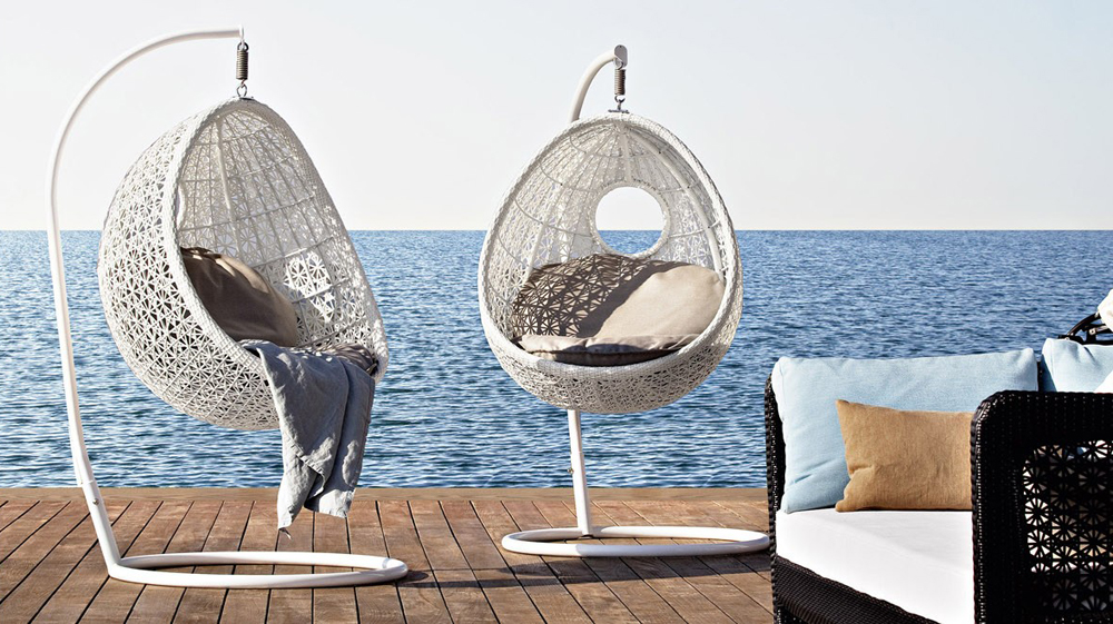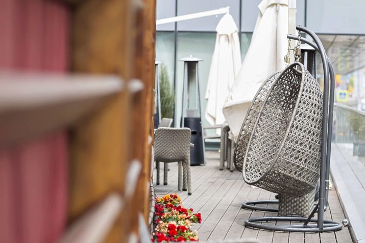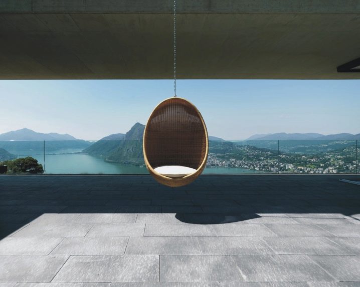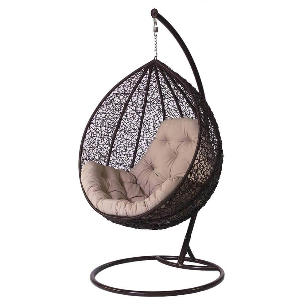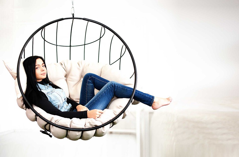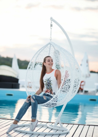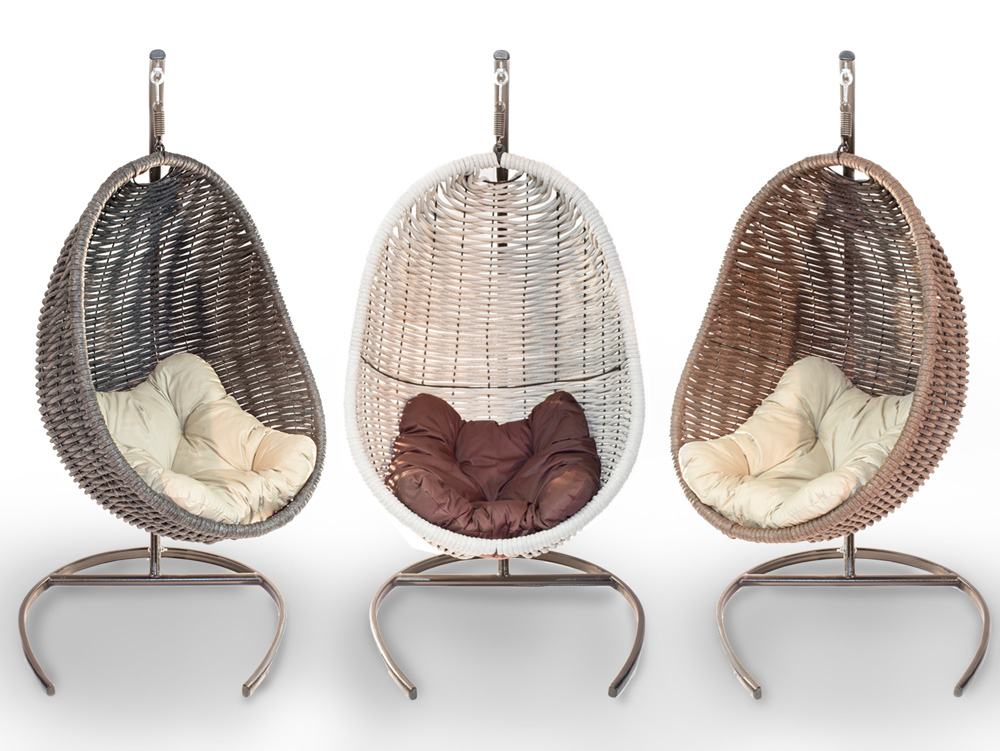 - Swing Stuhl "Cocoon". Sie haben ein Design wie das Vorgängermodell. Der Stuhl kann eine Person mit einem Gewicht von bis zu 120 kg tragen.