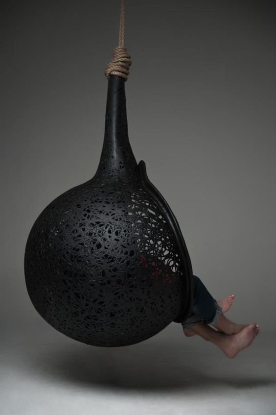 - Eine interessante Form. Es ist bemerkenswert, dass solche Möbel eine andere Form haben können. Zur gleichen Zeit ähneln sie alle einem Kokon.Daher der Name.
