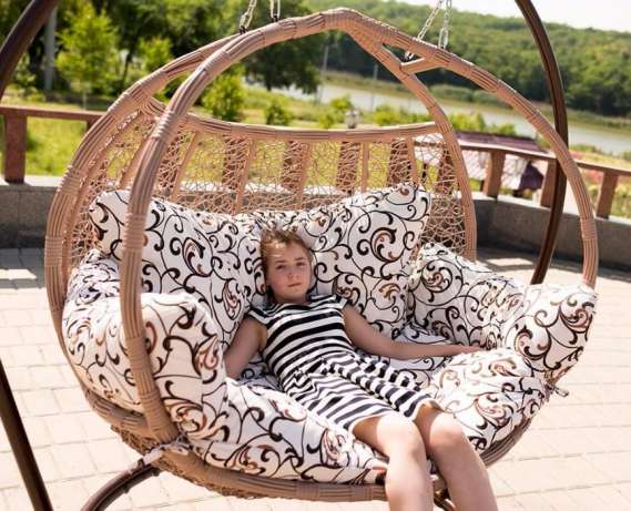 Ein Doppel-Kokon Stuhl wird Ihnen helfen, angenehme Zeit mit einer Person zu verbringen, die für Sie von Bedeutung ist. Sie können diese Option für geräumige Zimmer oder für die Veranda kaufen. Sie werden sich darin wohl fühlen. Darüber hinaus wird es möglich sein, zum Beispiel ein paar Kinder in das Produkt zu pflanzen.