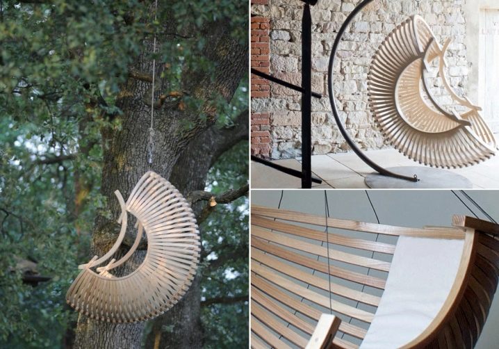 Diese Optionen haben einen speziellen Ständer, der am Stuhl befestigt ist. Solch ein Bett ist sehr komfortabel und stilvoll. Ein solches Modell kann nicht nur zu Hause, sondern beispielsweise auch auf dem Land aufgestellt werden. Sie können solche Möbel leicht transportieren und an jedem Ort neu anordnen. Die Hauptsache ist, auf die Zuverlässigkeit und Stärke der Befestigung zu achten.