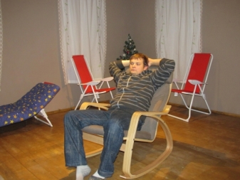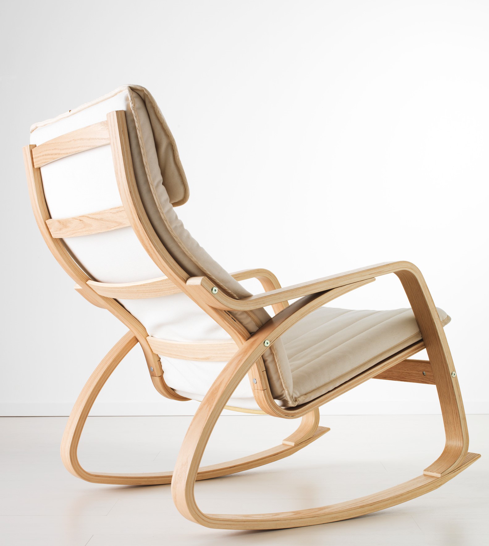 - Poeng Schaukelstuhl. Die Beine dieses Modells sind länglich und nach oben gebogen, um eine Schleife zu bilden. Der Abrollwinkel der Beine beträgt nicht mehr als 35 Grad aus der Gleichgewichtslage, daher ist die Gefahr des Umkippens ausgeschlossen. Trotz der bereits gebogenen Position beträgt der Winkel zwischen Sitz und Rückenlehne immer noch 90 Grad.