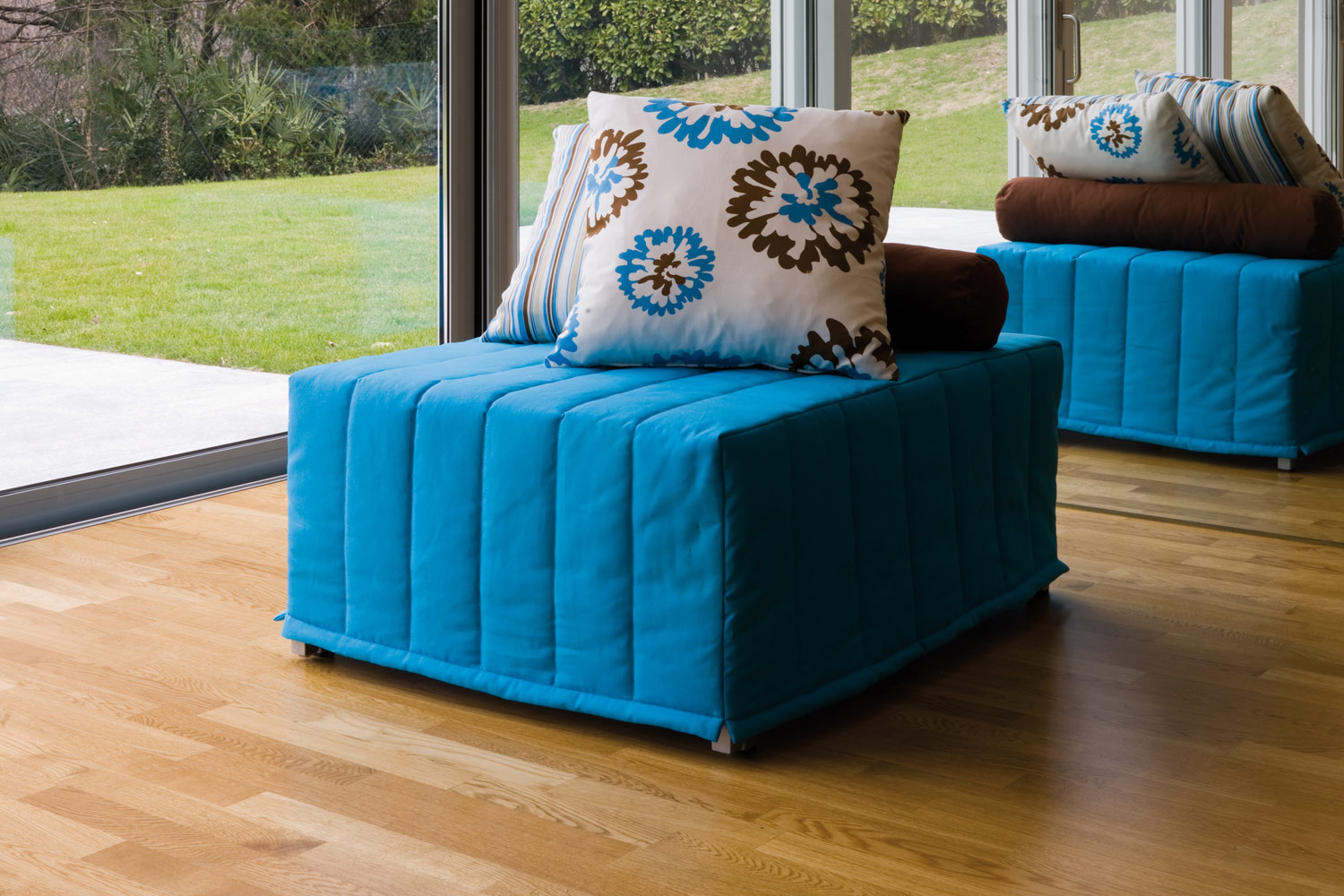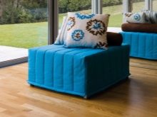 - Der zweite Typ ist rahmenlos: Solche Modelle bestehen in der Regel aus 3-4 Kissen, die miteinander verbunden sind. Wenn es zusammengebaut wird, sieht es wie ein Würfel oder Parallelepiped aus, wenn es zerlegt wird - wie eine Matratze. Sie können auch ein oberes Kopfkissen heben und schon einen Stuhl mit einem weichen Rücken bekommen. Sie können es in anderen Variationen zerlegen, so wie es die Fantasie will.