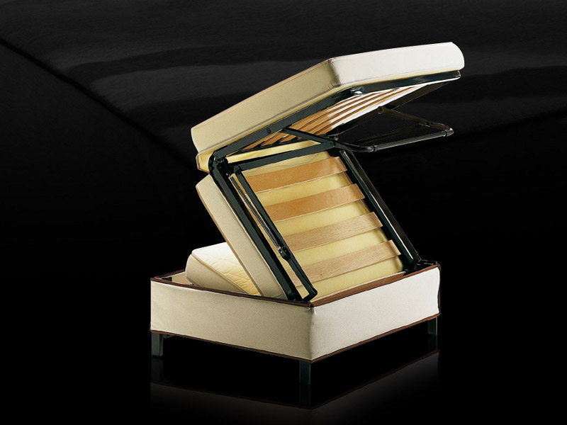 - Der erste Typ - Rahmen: Der gepolsterte Hocker selbst besteht aus Metallrahmen und dem Mechanismus, der diese Rahmen voranbringt. Es genügt, den Bezug vom gepolsterten Stuhl selbst zu entfernen und einfache Schiebemanipulationen durchzuführen.