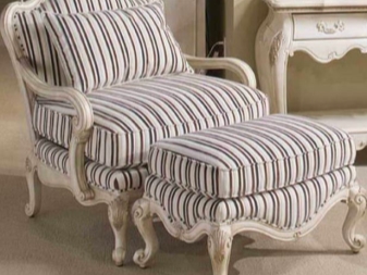 Anfangs war es eine niedrige feste Bank oder ein Stuhl, der in den Häusern des Adels stand und den exquisiten Geschmack und Reichtum der Besitzer betonte. Dann kam eine gepolsterte Polsterung. Nicht nur die Ballerinen nutzten solche Produkte, sondern auch die Teilnehmer der Abendgesellschaften und Gesellschaftsbälle, nachdem sie genug gewohnt hatten und die Beine auf den Hockern ruhen ließen, die durch den Stuhl ersetzt wurden.Diese Gruppe von Untersetzern ist sehr zahlreich in ihrer Form, Größe, Design, Farben und Polstermaterial. Aufgrund ihrer Vielseitigkeit und einer großen Anzahl von Modellen in verschiedenen Stilen eignet sich diese Version der Möbel für moderne und klassische Innenräume. Der Hocker wiederholt die Farbe, das Prinzip des Designs und die Elemente des Anziehens des Hauptproduktes. Es kann unabhängig verwendet werden, in Form von zusätzlichen Platz für Ruhe und auch als Tisch für Zeitschriften.