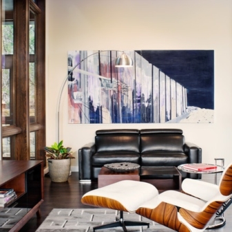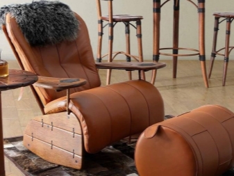 Es ist eine Dekoration des Hauses, geeignet für Wohnzimmer, Schlafzimmer, Bibliothek oder Terrasse. Zeigt den zarten Geschmack der Besitzer, und in Kombination von Lederpolsterung mit einem Holzrahmen bringt den Geist der Aristokratie in den Raum. Der Ständer kann entweder freistehend sein, aber im gleichen Stil mit dem Hauptmotiv hergestellt werden und eins mit ihm sein. Sie kann schwingen oder auf Beinen stehen. Wicker-Sets sehen sehr originell aus, was eine ausgezeichnete Wahl für ein Landhaus sein wird.