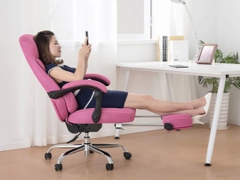 Das Funktionsprinzip dieser Konstruktion besteht darin, dass der Ständer am Stuhl befestigt ist und bei Bedarf ausgefahren oder entfaltet werden kann. Produkte dieses Typs werden in Zahn-, Massage- und Schönheitssalons verwendet, wenn Sie den Kunden eine Zeit lang bequem unterbringen müssen. Sie finden sich auch in Geschäftsklassen von Flugzeugen, in Bussen, die im Fernverkehr unterwegs sind, in Bars und Büros. Sie bieten eine Möglichkeit für eine kurze Pause aufgrund der zurückliegenden Rückenlehne und Fußstütze, die in der bequemsten Position befestigt werden können. Bei einigen Modellen geschieht dies synchron und wird durch Drücken einer Taste oder eines Hebels aktiviert. Im Inneren des Hauses findet man einen solchen Ausblick als Computerstühle, Möbel auf dem Balkon oder in der Bibliothek.