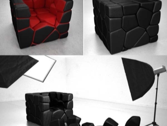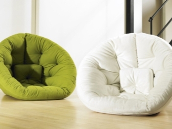 Solche Modelle werden immer beliebter. Weiche bequeme Sitze in verschiedenen Designs sind Modelle wie "Birne", "Hängematte", "Würfel" und andere Optionen. Rahmenlose Stühle sehen originell und stilvoll aus, bringen eine besondere Stimmung in das Interieur.