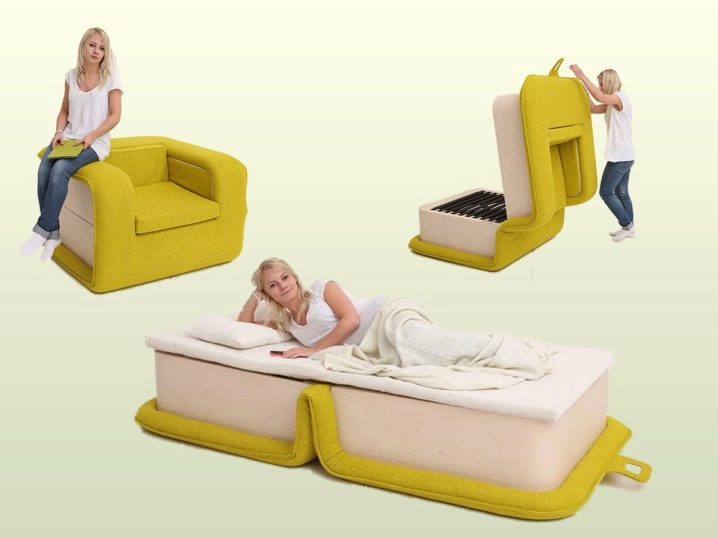 Diese Stühle sind universell. Sie können als Bett für eine kleine Wohnung oder als Gästebett dienen. Je nach Design fügen sich die Transformatoren für das Haus harmonisch in jeden Raum ein.