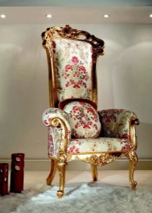 Verwenden Sie den Stuhl-Thron im Inneren sollte sehr vorsichtig sein. In diesem Fall müssen Sie sich auf den Stil des Raumes konzentrieren, da das Risiko besteht, das Gleichgewicht in der Umgebung komplett zu stören. Zum Beispiel, wenn das Wohnzimmer in der populären Richtung der Provence gemacht wird, wäre der Stuhl-Thron keine sehr angemessene Ergänzung.