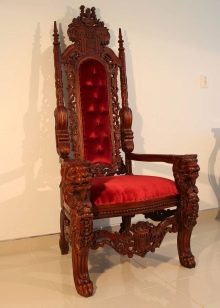 Neben den Vorteilen gibt es auch Nachteile. Der Hauptnachteil des Stuhl-Throns ist darauf zurückzuführen, dass es sich nicht für die Einrichtung moderner Innenräume eignet. Zum Beispiel können Möbel mit Schnitzereien und Samtpolster nicht mit strengen geometrischen Linien des Minimalismus kombiniert werden.