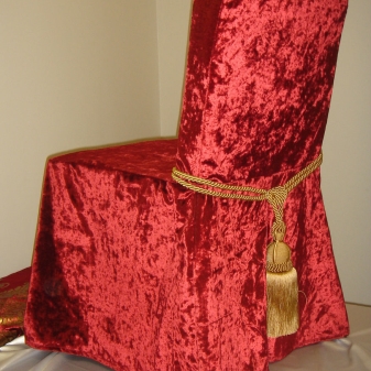 - Dann Sie müssen beginnen, ein Cover zu erstellen. Es ist am besten, für diesen Zweck hochwertiges und "edles" Material zu verwenden. Oft werden für die Polsterung eines hölzernen Throns Organza und Samt verwendet. Beachten Sie, dass die Abdeckung den Stuhl vollständig abdecken muss.
