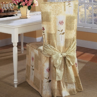 - Aus dem Stoff, den Sie brauchen Schneiden Sie einen breiten Streifen und legen Sie ihn um die Unterseite des Rückens. Auf der Rückseite des Stuhls müssen Sie einen Bogen binden. Wenn Sie dem Thron aus der Reihe einen majestätischeren Look geben wollen, dann verwenden Sie große Strasssteine zur Dekoration.