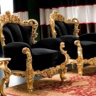 - Reich. Stühle für diesen Stil sind teuer und luxuriös. Meistens sind sie aus teuren Materialien (zum Beispiel Leder, Mahagoni), sowie mit teuren Stoffen hergestellt. Sehr oft werden solche Möbel mit Details der Vergoldung - und sogar Silber - ergänzt.