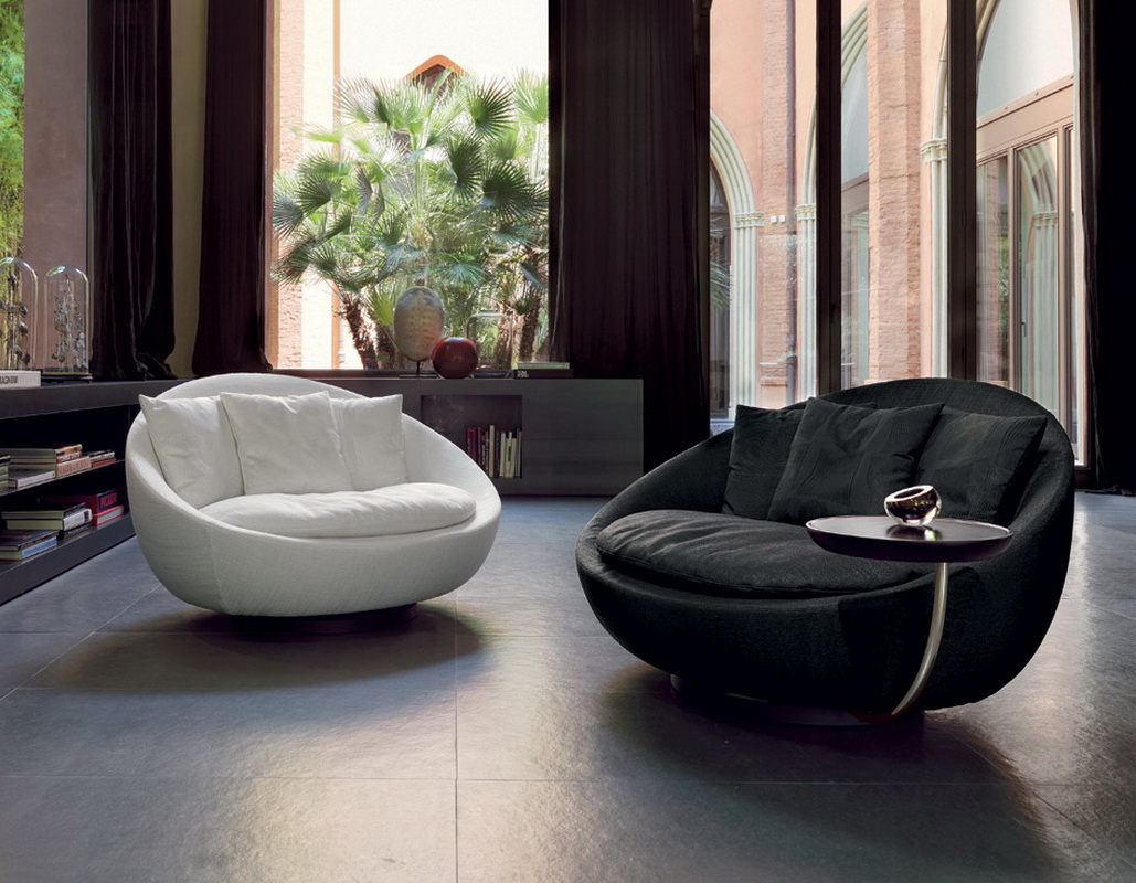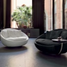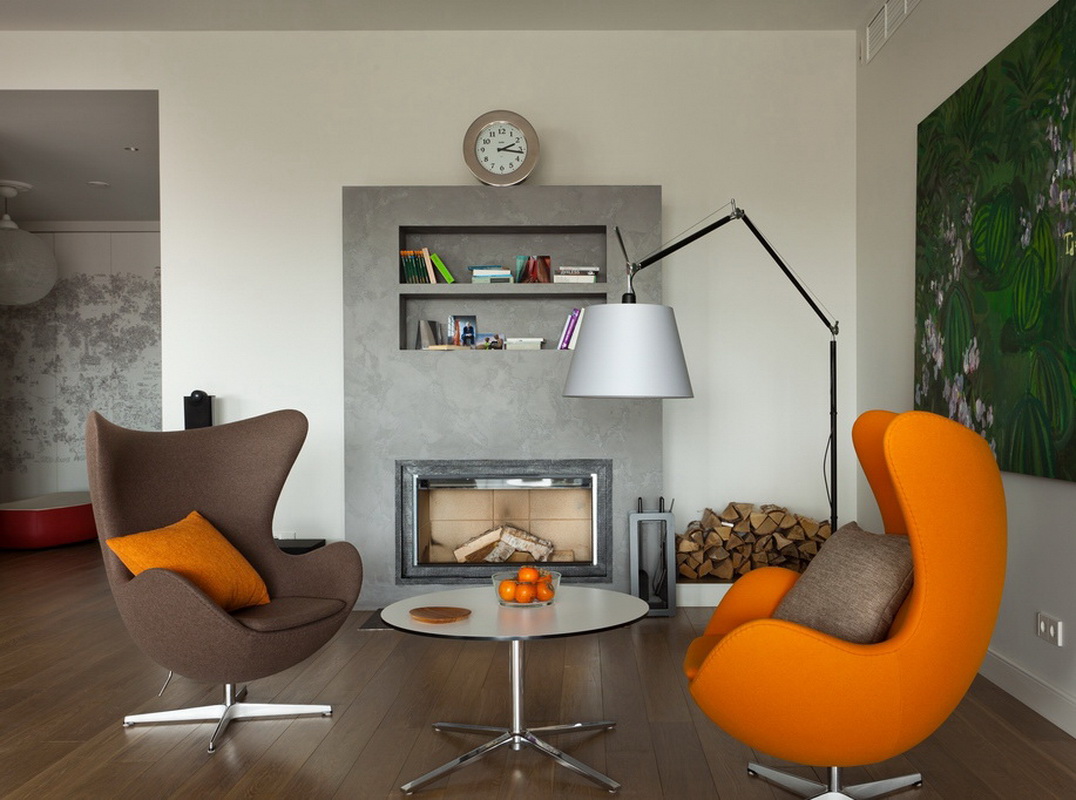- Wenn Sie ein Wohnzimmer brauchen High-Tech-Stuhldann vergiss nicht, dass dieser Stil ein Minimum an Objekten und maximale Klarheit von Linien und Details "liebt".Ein Sessel in diesem Stil zeichnet sich durch seine Prägnanz und Unauffälligkeit aus, er sollte so weit wie möglich in den Innenraum abgegeben werden und sein unverzichtbarer Teil sein. Meistens in den Möbeln dieses Stils gibt es metallisierte Teile.