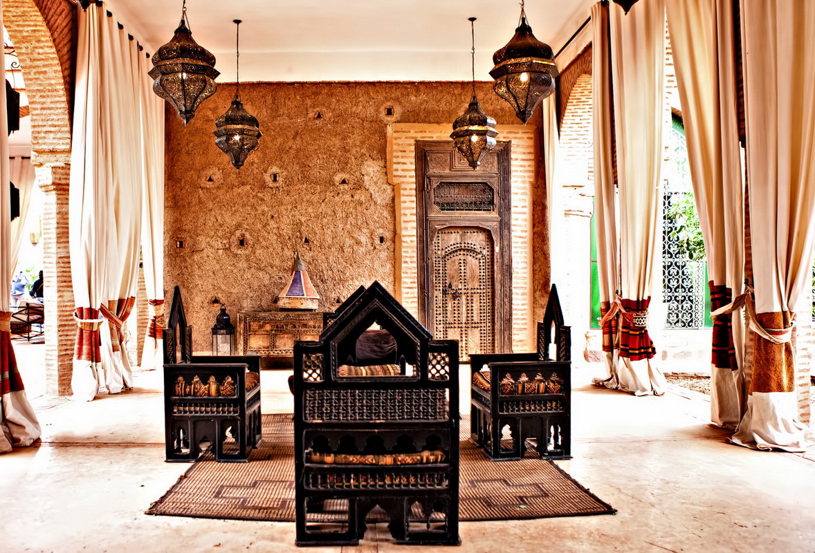 - Sessel im orientalischen Stil meist sehr hell und mit ausgefallenen Stoffdrucken, die dem Auge immer gefallen. Wenn Ihr Zimmer bereits voll von verschiedenen Oberflächen und Accessoires ist, ist es besser, die monotonen Möblierungsmöglichkeiten zu betrachten, ohne Schnickschnack.