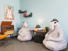 Es sind die kleinen Details, die die Atmosphäre im Raum schaffen. Vasen, kleine Umhänge, Teppiche oder vielleicht originale Möbel. Vor kurzem ist ein Stuhl in Form von Zhdun sehr populär geworden. Es verbindet praktische Funktionalität in sich selbst - schließlich sind Puffs und Taschen durchaus eine bequeme Option und Zärtlichkeit, die beim Betrachten ein Lächeln erzwingt.
