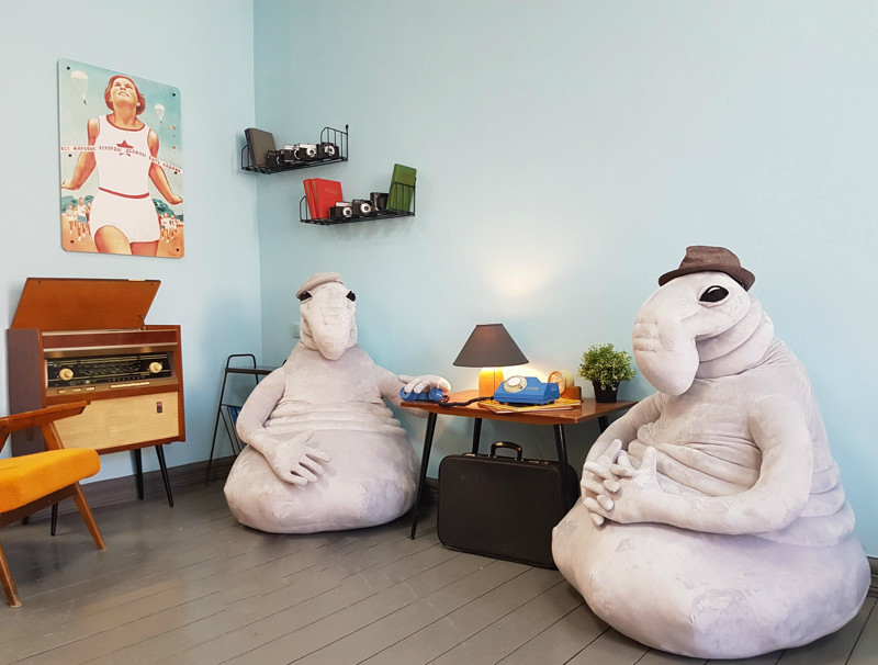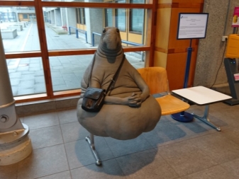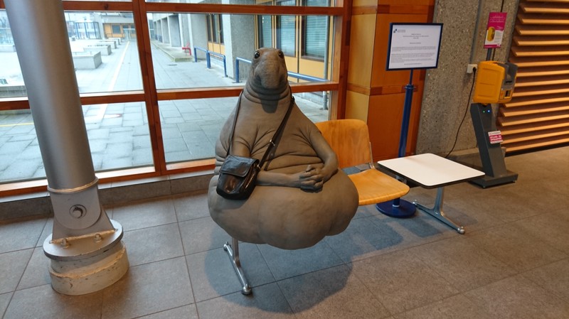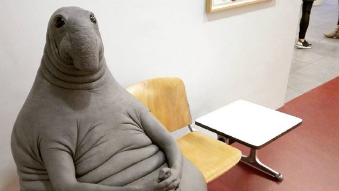 Es ist ein birnenförmiges, formloses graues Wesen, das buchstäblich in Teilen zusammengebaut ist - der Kopf eines nördlichen Seeelefanten, der Körper einer Larve und die gefalteten Hände auf dem Bauch.