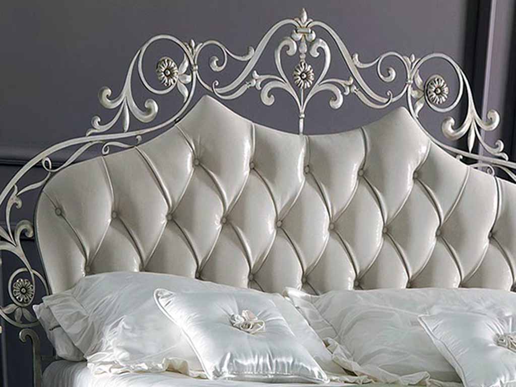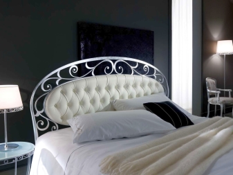 - Schmiedeeisen Bett mit weichem Kopfteil schafft eine gemütliche Atmosphäre in Ihrem Interieur. Exquisite geschmiedete Spitze verleiht ihm eine raffinierte Optik und außergewöhnliche Stärke, und weiche Füllung verleiht ihm eine einfache Handhabung.