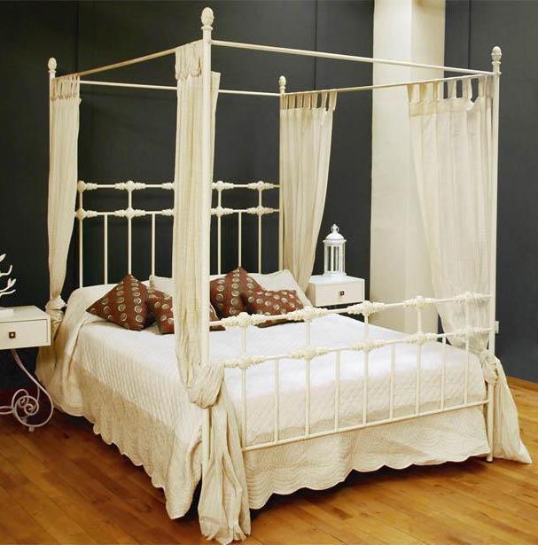 - Neoklassizismus. Es zeichnet sich durch reiche Dekoration, Symmetrie und Prägnanz sowie natürliche Motive aus.Es entspricht einem weißen Bett mit einem Baldachin. Ornament geschmiedet zurück verdünnen die mögliche Strenge und geben Adel und Adel.