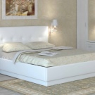 Eine Analyse der Bewertungen ergab, dass heute viele moderne Paare ihre Schlafzimmer mit weißen Möbeln ausstatten. Sie weisen darauf hin, dass ein solches Bett dem Raum Licht und Komfort gibt, das Schlafzimmer sieht geräumig aus und es entsteht eine intime Atmosphäre. Sehr viele Leute mögen Betten mit Furnier - dass eine solche Abdeckung sehr leicht zu waschen ist, weiße Möbel werden nicht so eine Marke.