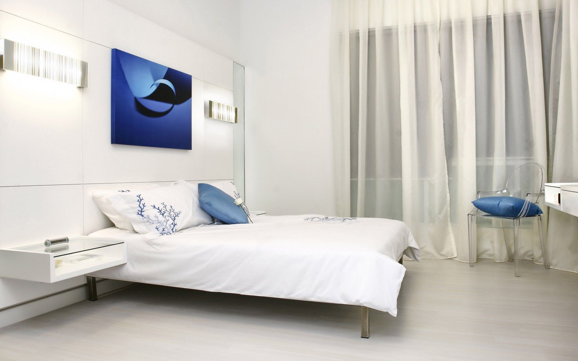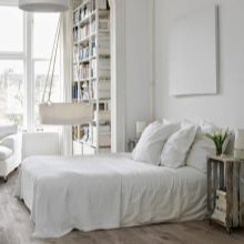 Bedenken Sie bei der Wahl eines weißen Bettes, dass es nicht mit der Farbe des Bodens und der Wände harmonieren sollte, sonst sieht der Raum langweilig aus. Wenn Sie weiße Wände und den Boden haben, ist es besser, wenn das Bett grau oder gelblich ist, so dass es sich gegen das Weiß abhebt. Wenn Sie gegenüberliegende Wände, dunkle oder helle Wände und den Boden haben, ist es besser, ein schneeweißes Bett zu bekommen, es wird ein heller Fleck in Ihrem Schlafzimmer.