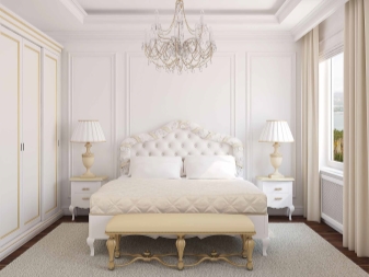 Einige Leute schreiben, dass ein perfektes weißes Bett mit weißen Stehlampen und einem flauschigen Bettvorleger gut aussieht. Ein solches Ensemble sieht ihrer Meinung nach sehr stilvoll aus. Auch die Analyse der Bewertungen zeigte, dass die meisten Menschen weiße Betten für Schlafzimmer im Stil der Provence oder Classic erwerben, da diese Farbe und ungewöhnliche Modelle von Betten perfekt in diese Innenarchitektur passen.