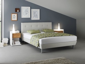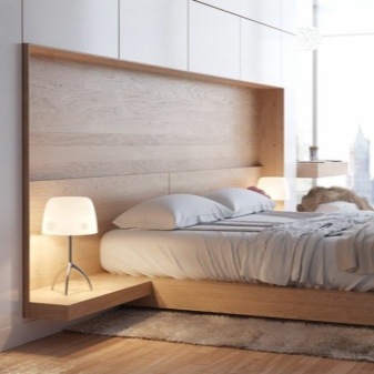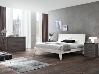 Das genaue Gegenteil ist leichte Schlafzimmermöbel im modernen Stil. Ein solches Produkt wird keine Beine haben, das sind Modelle mit einer geringen Höhe, die sich durch Bequemlichkeit und Funktionalität auszeichnen. Diese Betten sind nicht zu originell im Design, aber sehr stilvoll. Möbel im Stil des Minimalismus haben auch einige zusätzliche Details. Einige dieser Produkte haben nicht einmal ein Kopfteil und ein Fußteil und sind auch ziemlich niedrig angeordnet.