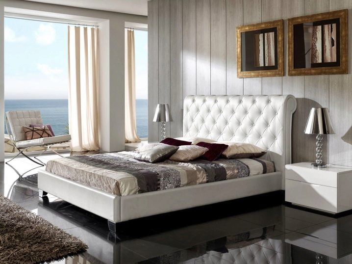 - Lederbett sieht sehr luxuriös und elegant ausNormalerweise macht das Kopfteil so aus, und es kann weich sein, aber es wird sehr angenehm sein, sich darauf zu lehnen. Weißes Lederbett kann streng und gleichzeitig sehr elegant aussehen, es ist eine ausgezeichnete Wahl für jedes klassische Schlafzimmer.