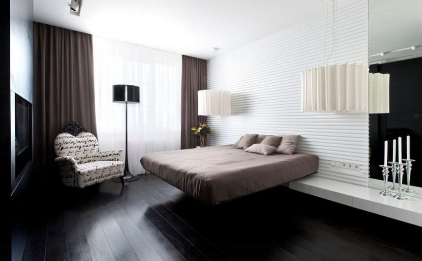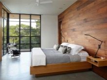- Installiertes Panel vom Boden bis zur Decke wird es von der fehlenden Rückenlehne ablenken. Die Höhe des Paneels wird nur vom Geschmack und den Wünschen des Zimmerbesitzers bestimmt.