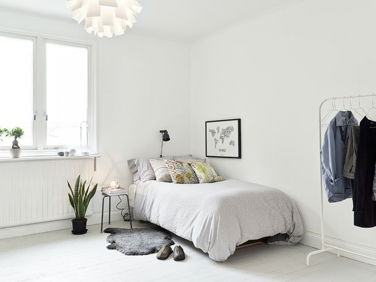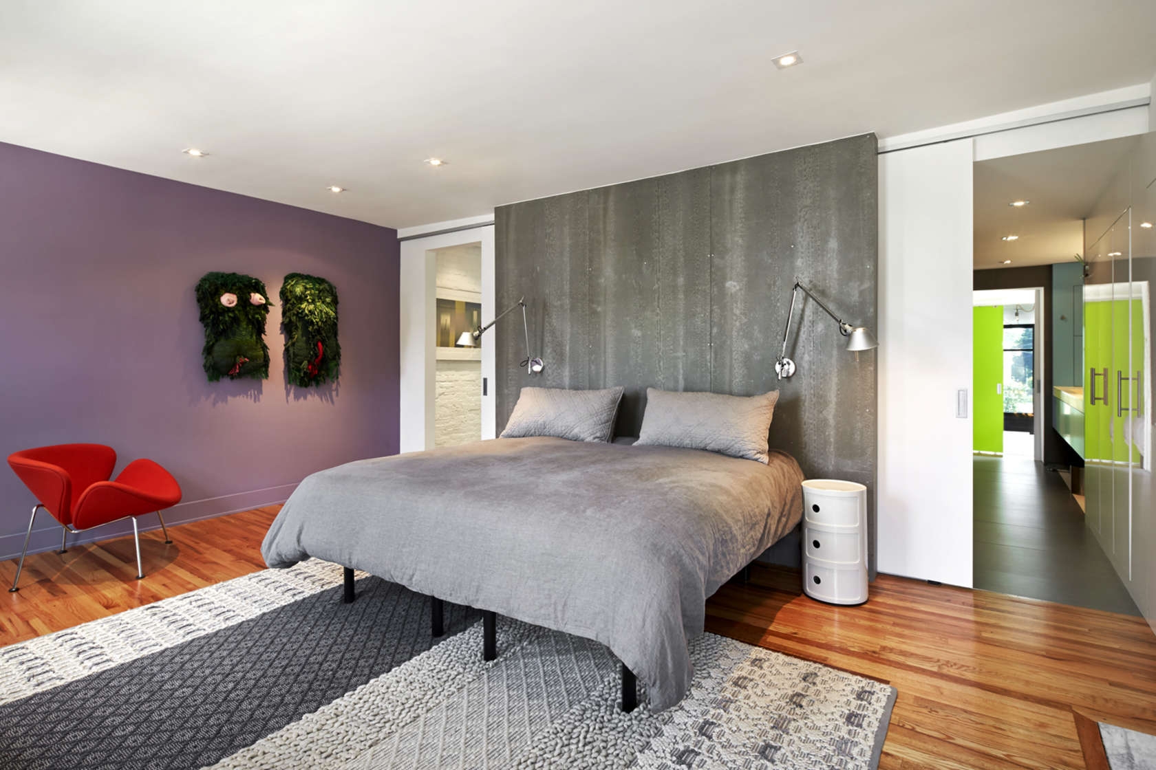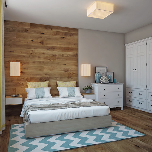 - Die Wand hinter dem Bett kann arrangiert werden eine separate auffallende Farbe.