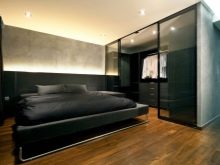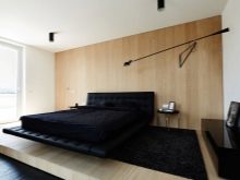 - Multilevel-Beleuchtung Es wäre angemessen, wenn das Zimmer ein schwarzes Bett mit einer matten Oberfläche hat. Unter einer solchen Beleuchtung wird es noch stilvoller aussehen.