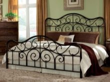 Für ein ultramodernes modernes Interieur wäre die ideale Lösung, ein schmiedeeisernes Bett in Schwarz zu platzieren. Kreativ und ungewöhnlich werden alle Arten von geschmiedeten Gegenständen an der Spitze des Bettes aussehen. Solche Produkte sind sehr schön, sie ziehen Blicke an.