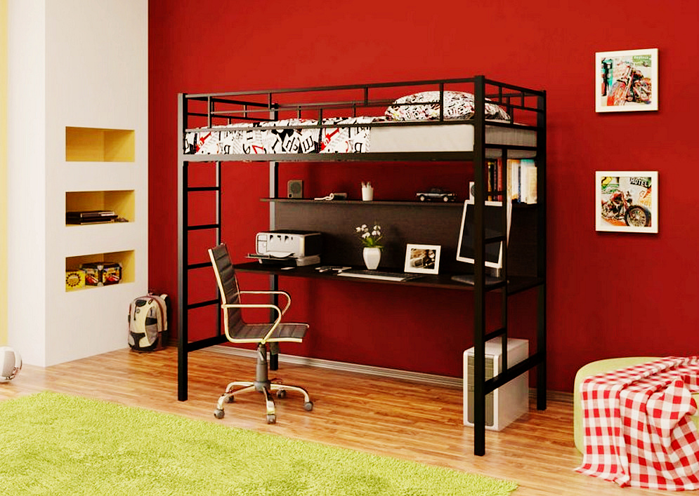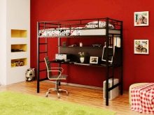 - Eine weitere Option für ein Kinderzimmer - ein Hochbett. Dieses Modell hilft auch, Platz zu sparen und nicht einen kleinen Bereich auf einmal zwei Zonen zu organisieren - eine Arbeits- (oder Spiel-) und eine Schlafzone.