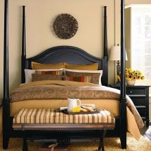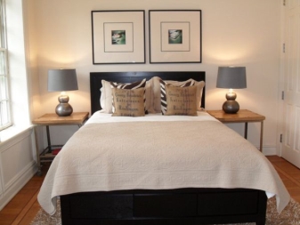 - Auf dem Schrank, der sich neben dem Bett befindet, es ist notwendig, eine Lampe zu installieren, deren Ton mit der Dekoration des Bettes kombiniert wird. Wenn es in Ihrem Schlafzimmer keine Nachttische gibt, stellen Sie eine Stehlampe einer bestimmten Farbe neben das Bett.