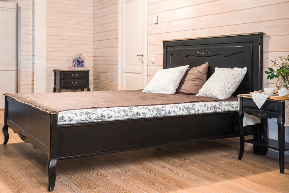 Für das Interieur im französischen Empire-Stil müssen Sie auf jeden Fall ein Bett "black gloss" wählen. Dieses Modell passt gut in den von den Franzosen erfundenen Einrichtungsstil und betont auch den raffinierten Geschmack der Besitzer.