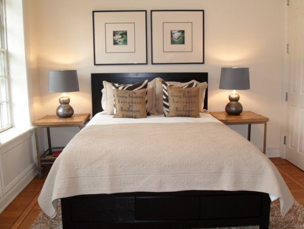 - Verwenden Sie in einem Raum mit einem dunklen Bett. so viel wie möglich stilvolle Accessoires von hellen oder kontrastierenden hellen Farben.