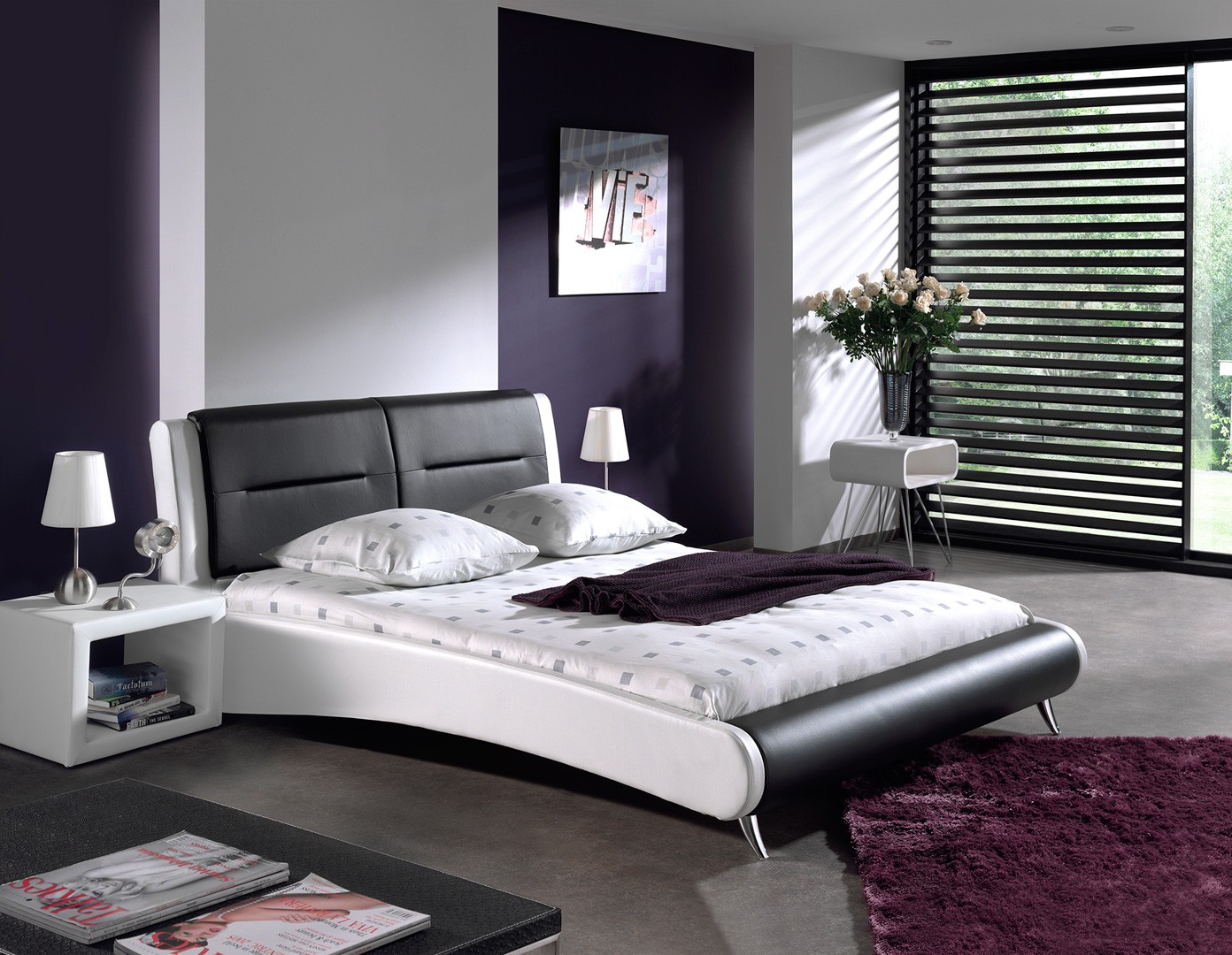 Ein ausgezeichneter Entwurfsmechanismus ist, weiße Schlafzimmerelemente mit einem schwarzen Bett (sowie andere schwarze Möbel) hinzuzufügen. Ein solcher Raum wird nicht länger düster und überwältigend erscheinen.