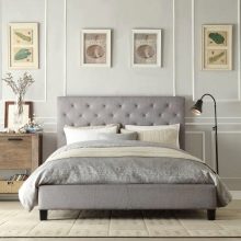 Wenn Sie möchten, können Sie jedoch eine Version des Modells mit einem weichen Kopfteil und funktionalen Seitenregalen finden. Sie können kleine Bücher, Tagebücher, Bilderrahmen unterbringen.