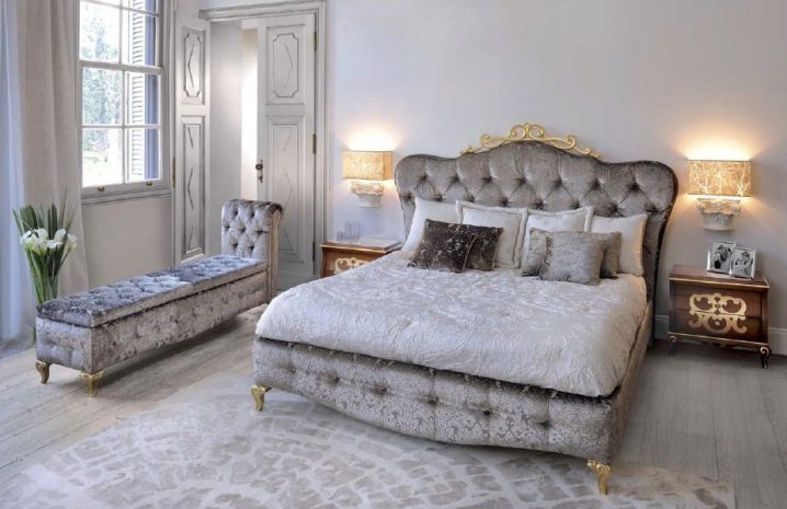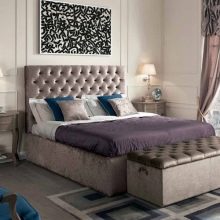 Oft werden solche Möbel mit einem massiven weichen Kopfteil geliefert. Das reiche Design schafft eine Atmosphäre majestätischen Luxus im Raum. Und die Möglichkeiten der modernen Technologie erlauben Ihnen, maximalen Komfort zu genießen. Die orthopädische Grundlage, die eingebaute Schachtel für die Wäsche, die praktischen und angenehmen Materialien der Berührung - alles richtet sich auf die Bildung der idealen Möbel.