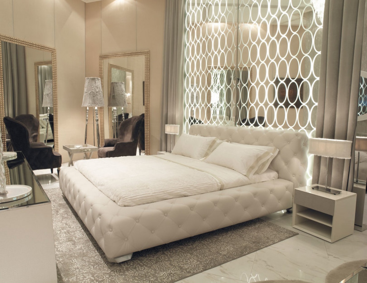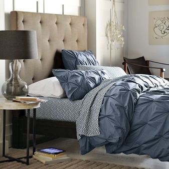 - Dekorative Funktion. Weiche Polsterung macht das Bett bequemer. Es ist, als lade man ein, den Rest in seiner zärtlichen Umarmung zu genießen. Darüber hinaus kann ein schönes Doppelbett mit einem weichen Kopfteil eine echte Dekoration des Raumes sein. Viele Hersteller repräsentieren nicht nur Betten, sondern ganze Kopfhörer im gleichen Stil. Dies sind Schränke, Kommoden, Schränke und andere Elemente, mit denen Sie die perfekte Atmosphäre im Schlafzimmer schaffen können.