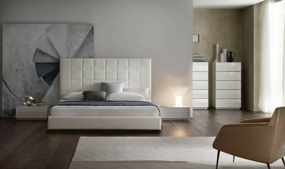 Minimalismus und Hi-Tech suggerieren Zurückhaltung und Strenge der Formen. Zusammen mit Betten ohne Rückenlehne, in modernen Interieurs oft Modelle mit einem weichen Lederkopfteil verwenden.